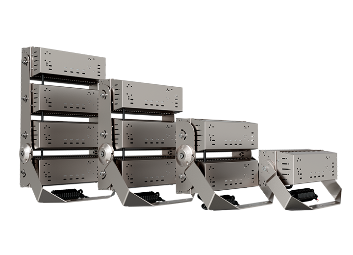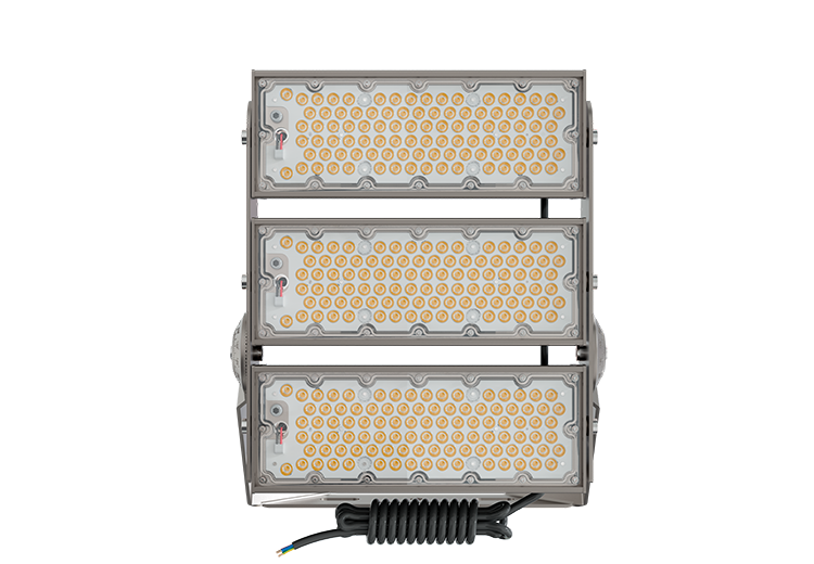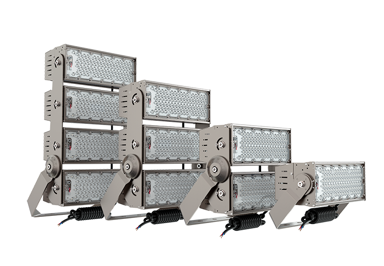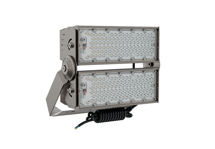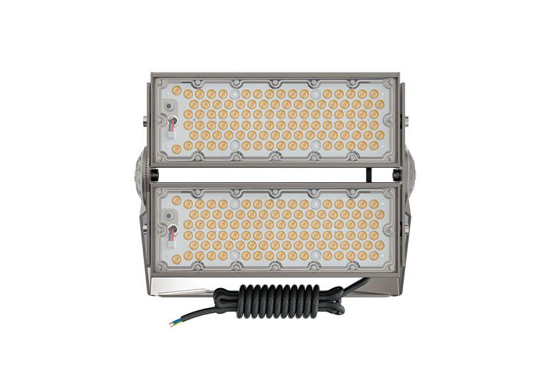 Typical applications include football stadiums, athletics tracks, training grounds, large parking areas, ports, logistics yards, and other open spaces that require reliable, high-output LED lighting from elevated mounting positions.